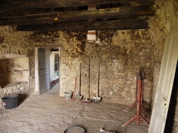! pour la suite on s’attaquera au vieux conduit dans la cuisine ainsi qu’aux poutres !!! et enfin les DALLES au sol …. douleurs aux biceps assurées !