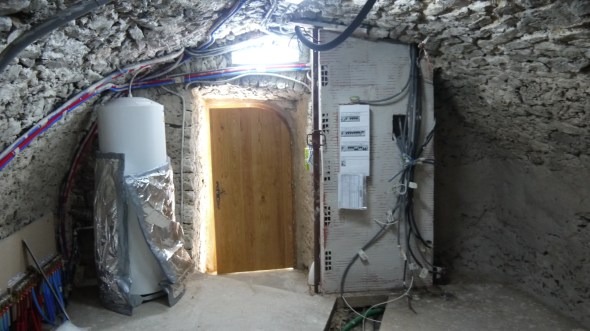 j’ai pas fait que ça!! j’ai posé l’éclairage dans la chaufferie , passé un coup de débroussailleuse (encore) et fini par installer l’échafaud pour la semaine prochaine …