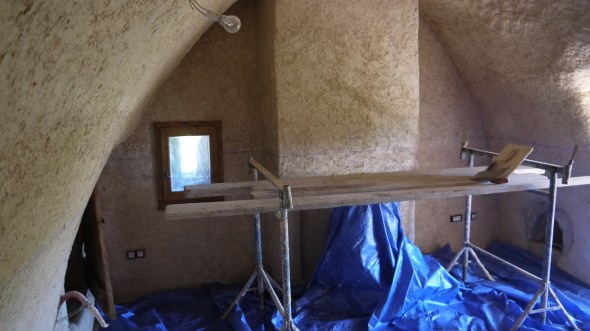 Argilus , devinez ! c’est pas le nom d’un chien , ni d’un personnage ROMAIN illustre , c’est juste le nom donné à des enduits à base de terre oui,oui, de la bonne terre bien de chez nous (de vendée!!! y savent plus quoi vendre les ventrachous !) blague à part c’est le produit idéal en reno en guise de finition ,les murs respirent , l’hygrométrie reste stable enfin bref c’est parfait … en plus on ne se brule pas , pas de liant inside (ni chaux ,ni ciment !!!) juste de la terre et un poil de sable très fin (comme moi) et des fibres de lin : donc pas de gants … seul inconvénient l’application se fait par 1cm d’épaisseur , donc il va falloir pour certains endroits en passer plusieurs couches … allez c’est parti on commence par le plus bel emplacement : les wc !! application , le lendemain on le serre on le ferre (l’enduit pas la truite!) puis on le taloche (taloche spéciale douceur!)… on verra le résultat la semaine prochaine après brossage ….