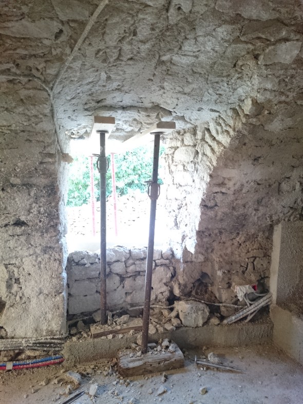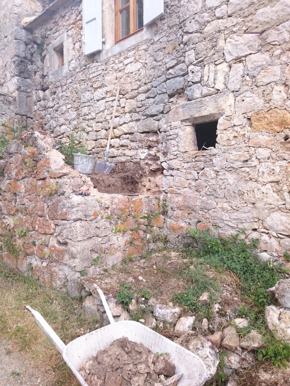 On commence à être habituer … ça y est on y est , il faut ouvrir !! l’angoisse c’est les tas de caillasses que ça va générer , enfin faut s’y mettre , et en plus y a la jardinière a démonter …on se régale … livraison au petit matin de la fenêtre (merci jean Philippe!)