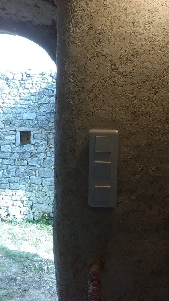 ET HOP ! voilà c’est fait …après la pose d’un miroir chiné,repeint ; l’elec est terminée dans la chambre et OH miracle ! tout fonctionne ; ne manque que quelques ampoules pour éclairer directement le chantier, bon pour les besoins des photos j’ai même mis les plaques de finition sur les interrupteurs , mais bon le temps des enduits se rapproche ,et il faudra à nouveau les enlever, un peu de nouvelles des huisseries : ça avance !! les délais seront à priori maintenus ….allez place aux images !