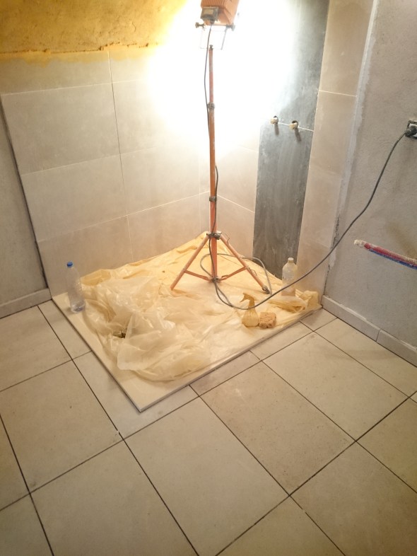 Une semaine de boulot , et déjà de retour pour continuer la salle d’eau , ROBERT a récolté son miel (une seule ruche cette année…) , bon le dallage est fini dans la salle de bains , le sol sous le futur poêle est rehaussé avant de recevoir des dalles de pierre lui aussi …