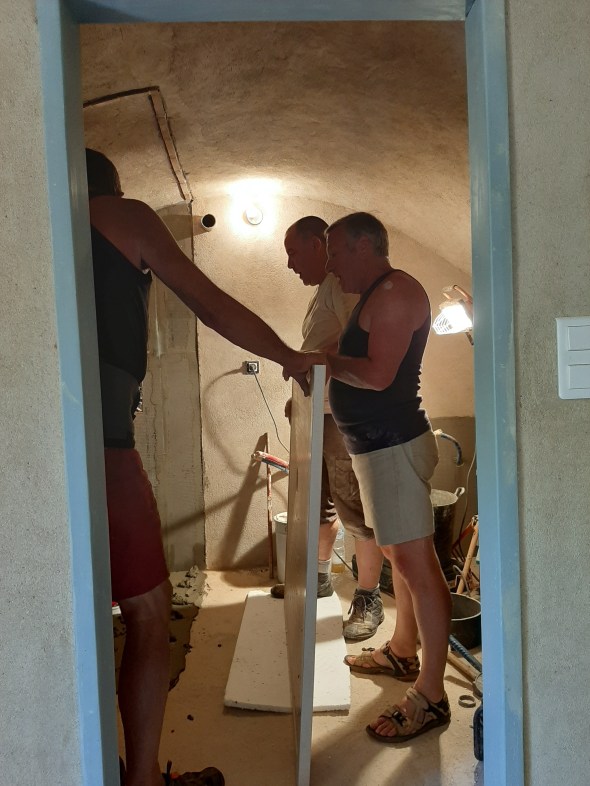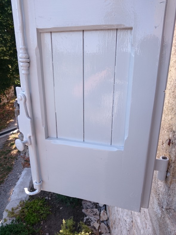 juste 1 semaine sur le causse …. c’est court mais cette année ce sera pas plus ; de toutes façons, ça avance bien avec tous les weekends passés là haut , bon aller on commence : bac à douche livré,posé, ainsi que les dalles aux murs de la salle de bains ,tous les volets sont repeints …eh ouais déjà il faut recommencer , et puis des arrêts de volets forgés sympa sont posés , depuis le temps qu’ils m’attendaient …une matinée de pêche quand même et puis on rentre !!!