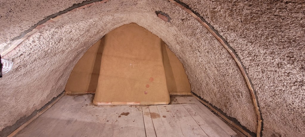 Le mauvais temps ne devrait pas tarder , cela tombe bien , on bosse à l’intérieur maintenant juste sous la voute , quelques tesselles découpées , posées , jointées , y compris un rang de terre cuite pour démarquer la voute du reste du salon … et mon taf de l’automne débute par la cape de la cheminée du salon , terre terre terre … l’avantage c’est que je bosse sans gants , ce qui est pas mal ! 2 palettes commandées chez argilus (Vendée) ,rangées à l’intérieur par nos gentils voisins ,1 tonne quand même ,passée par les escaliers , c’est pour moi une journée en moins à forcer …merci à tout le « quartier nord » de la volpiliere ; comme les autres pièces déjà faites , j’ai choisi des tons différents …vous le découvrirez au fil du temps … une poutre récupérée chez Bernard , décapée et traitée , j’en ferais bon usage …bientôt !