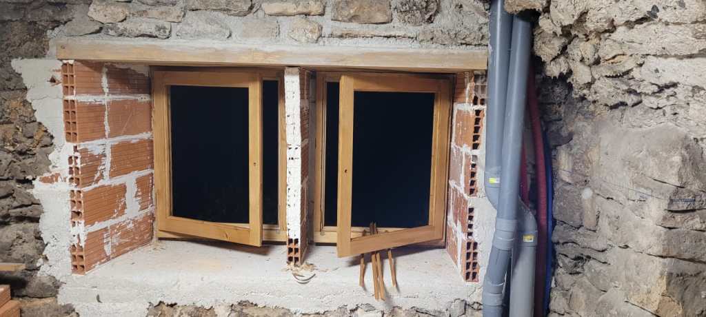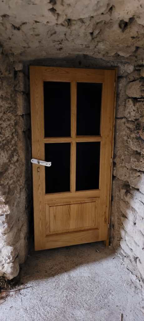 et revoilà GUY le gentil menuisier des gorges de la Jonte , avec les dernières huisseries pour la bergerie , fenêtres et porte posées