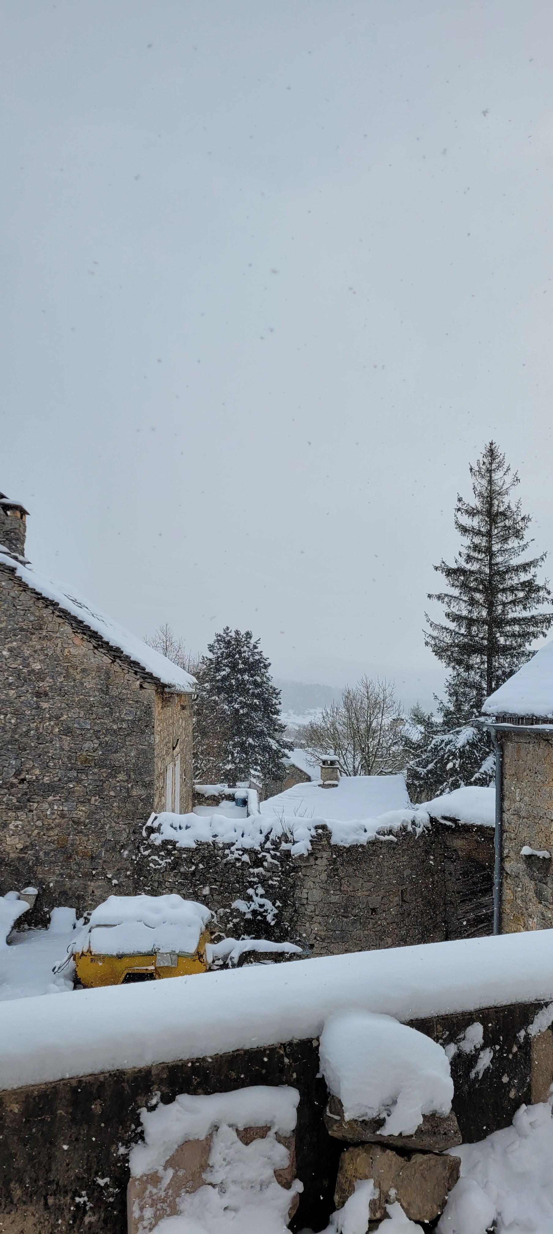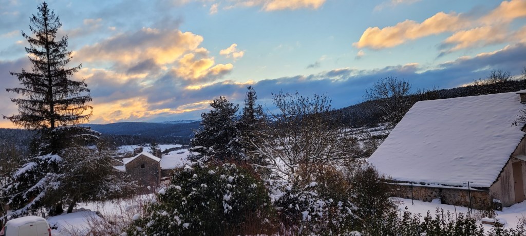 il y avait comme un air de canada ou je ne sais quelle contrée congelée , heureusement les voisins sont là pour me chauffer la « vieille » , avant que je n’y arrive ….une fois à l’intérieur on n’a plus trop envie de sortir , mais bon , du coup on s’active pour éviter de geler sur place … mais quand même s’accorder quelques minutes avant le lever complet du soleil sur le CAUSSE , cela vaut bien le coup pour le spectacle . Du coup , vu les températures glaciale – 9° ressenti -15 ° grâce à cette bise ,moitié mistral moitié tramontane , on reste à l’intérieur , la tète de lit est bien avancée … sur la mezzanine !