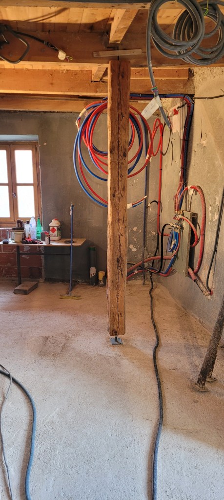 l’hiver pointe le bout de son nez , le poteau de soutènement du plancher de l’ancienne trémie est posé.