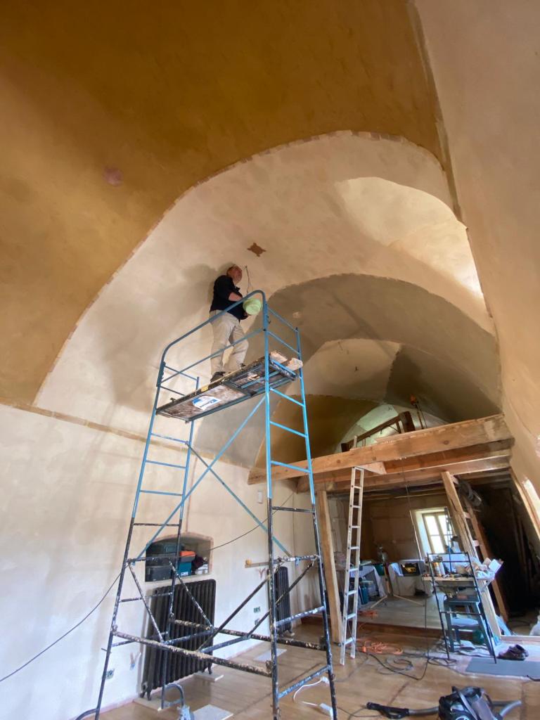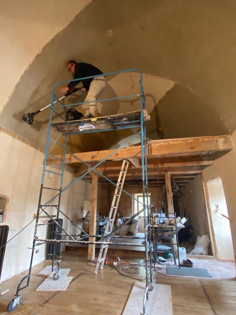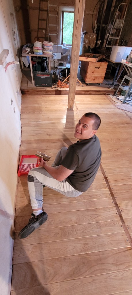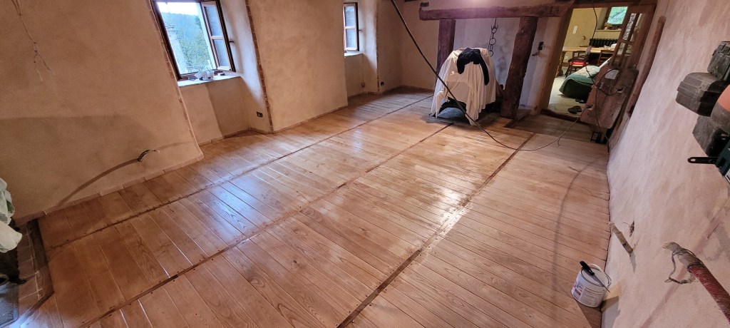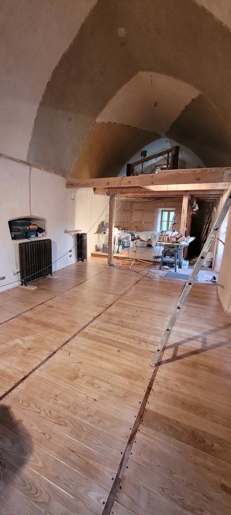 Après des mois de labeur , tous les planchers sont terminés , posés , vitrifiés avec l’aide de Leon ce weekend …les pièces commencées il y a 3 ans , sont presque « vivables », ne me reste que l’électricité à terminée (appareillage et branchement !) ça peut encore un peu attendre , il me reste les murs du salon à habiller, ainsi que le faux plafond avec du bois ,lequel ??? le local tech à aménager , le placard de l’entrée à envisager .. mais bon toute la voute est dépoussiérée , ne me reste que les murs à dépoussiérer… pour la mezzanine c’est pareil dépoussiérage fait , branchement de l’évacuation du bac à douche est faite . il me reste à brancher l’évacuation est alimentation en eau du lavabo une fois que la vasque idéale sera trouvée … on s’occupe quoi !
