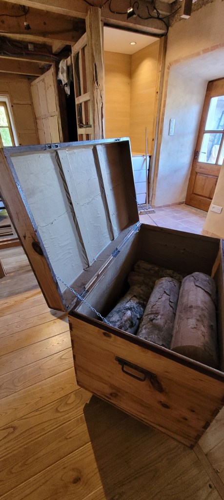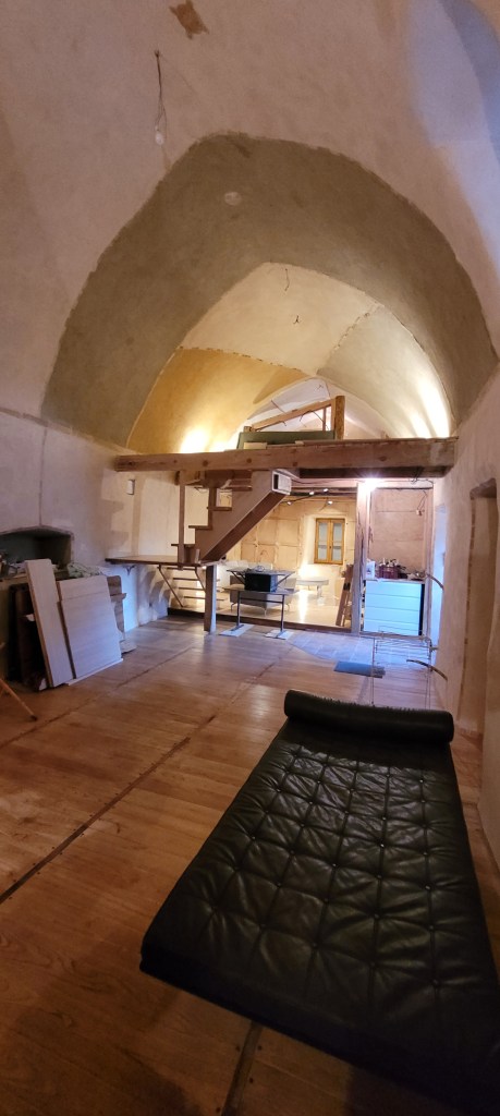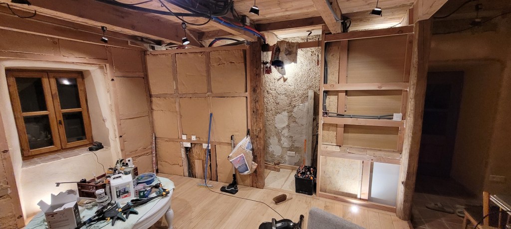 Il faut bien rattraper le temps , trop occupé ces dernières semaines pour une mise à jour du blog , du coup : ce pont du 11 novembre tombe à point nommé … profitez en , toujours dans le tempo des finitions du salon ,sam ,mezzanine .. le bois est commandé pour fini le salon (plafond et murs) , je change de niveau ,après 4 années passées au 1 er , je retourne au rez de chaussée , il s’agit déjà d’organiser et de ranger le futur chantier de la bergerie dite de « Noémie » , dernière pièce à rendre fonctionnelle … les lignes de cette chambre sont tracées : y a plus qu’a ! on va attendre la fin d’année/début d’année 2026 pour s’y attaquer sérieusement … je vais devoir ressortir le poêle de chantier !
